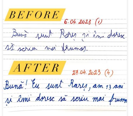Am reușit să îmbin toate cunoștințele dobândite, să las puțin din mine în această formulă ”magică” și să creez o tehnică prin care transform nu doar aspectul scrisului elevilor mei, ci și calitatea vieților lor.