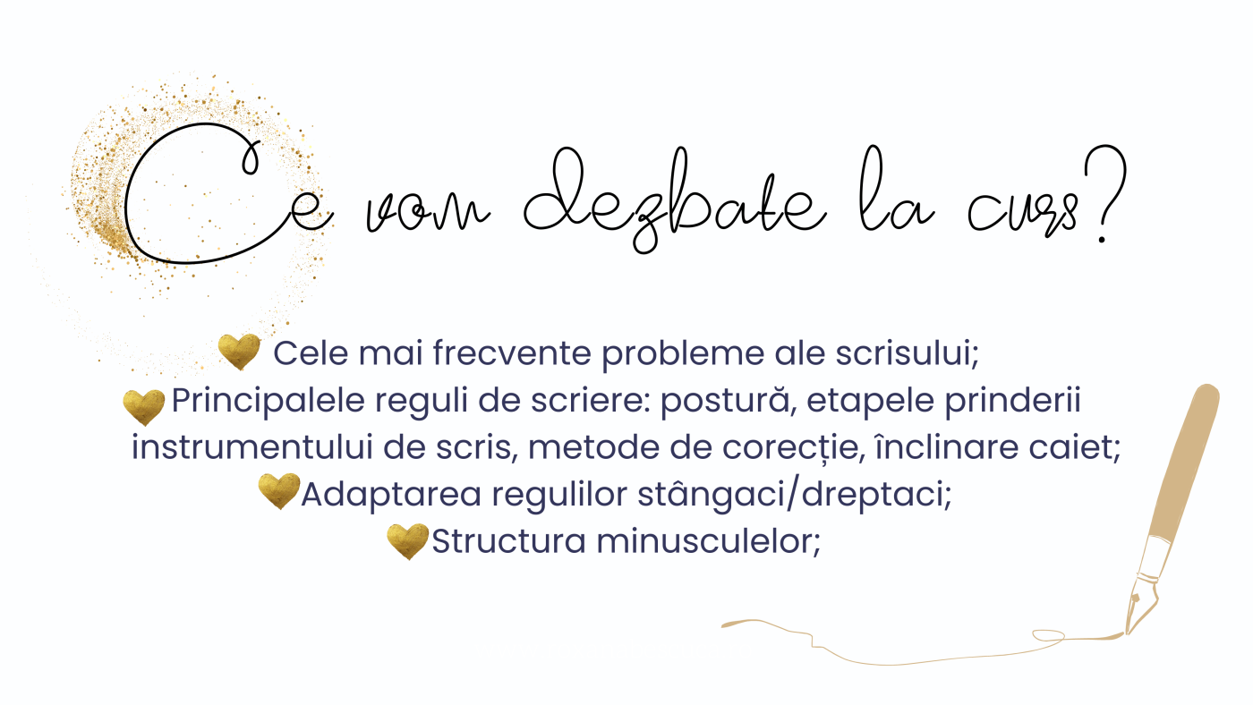 Pentru că familia se mărește și în curând devin mamă, cursurile de caligrafie pentru copii vor trece în plan secund. Astfel, acesta a fost ultimul modul dedicat elevilor. Nu știu cât de lungă va fi aceasă pauză, însă până atunci pregătesc un suport de curs pentru acasă, care va fi disponibil în curând în format digital.